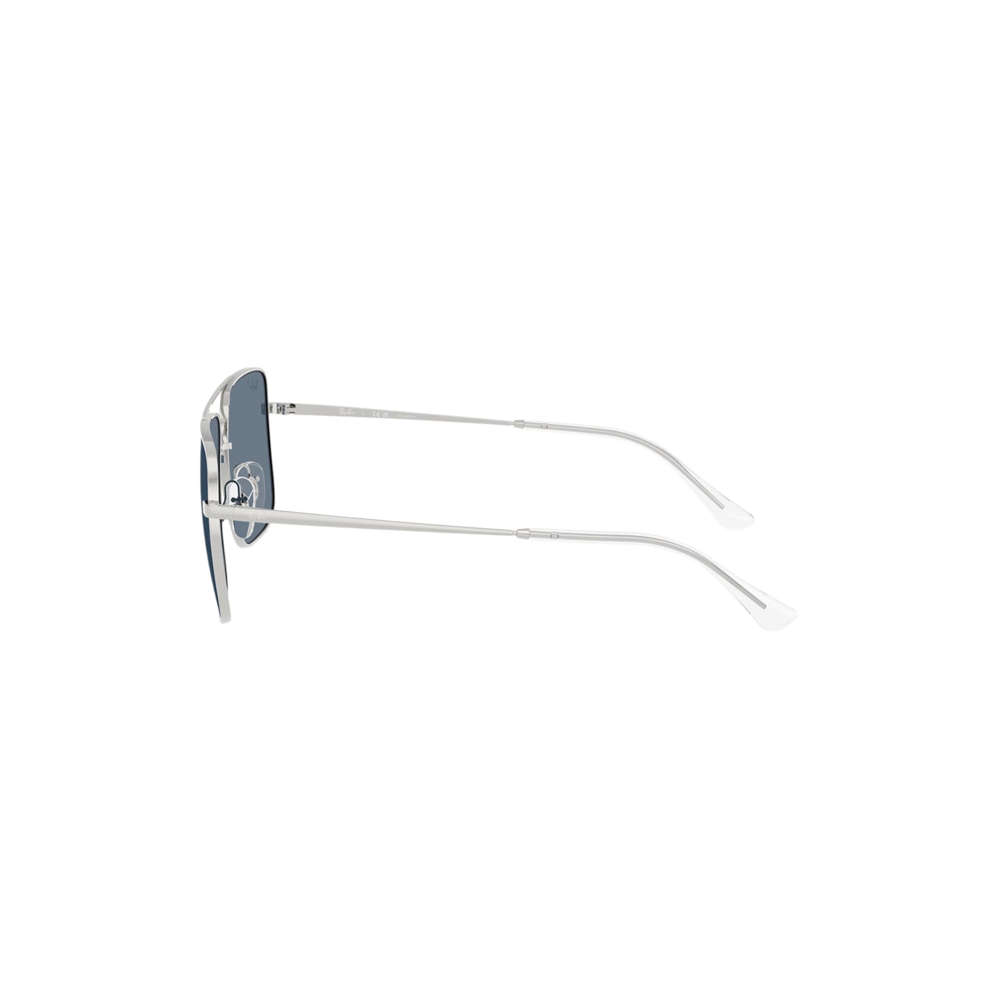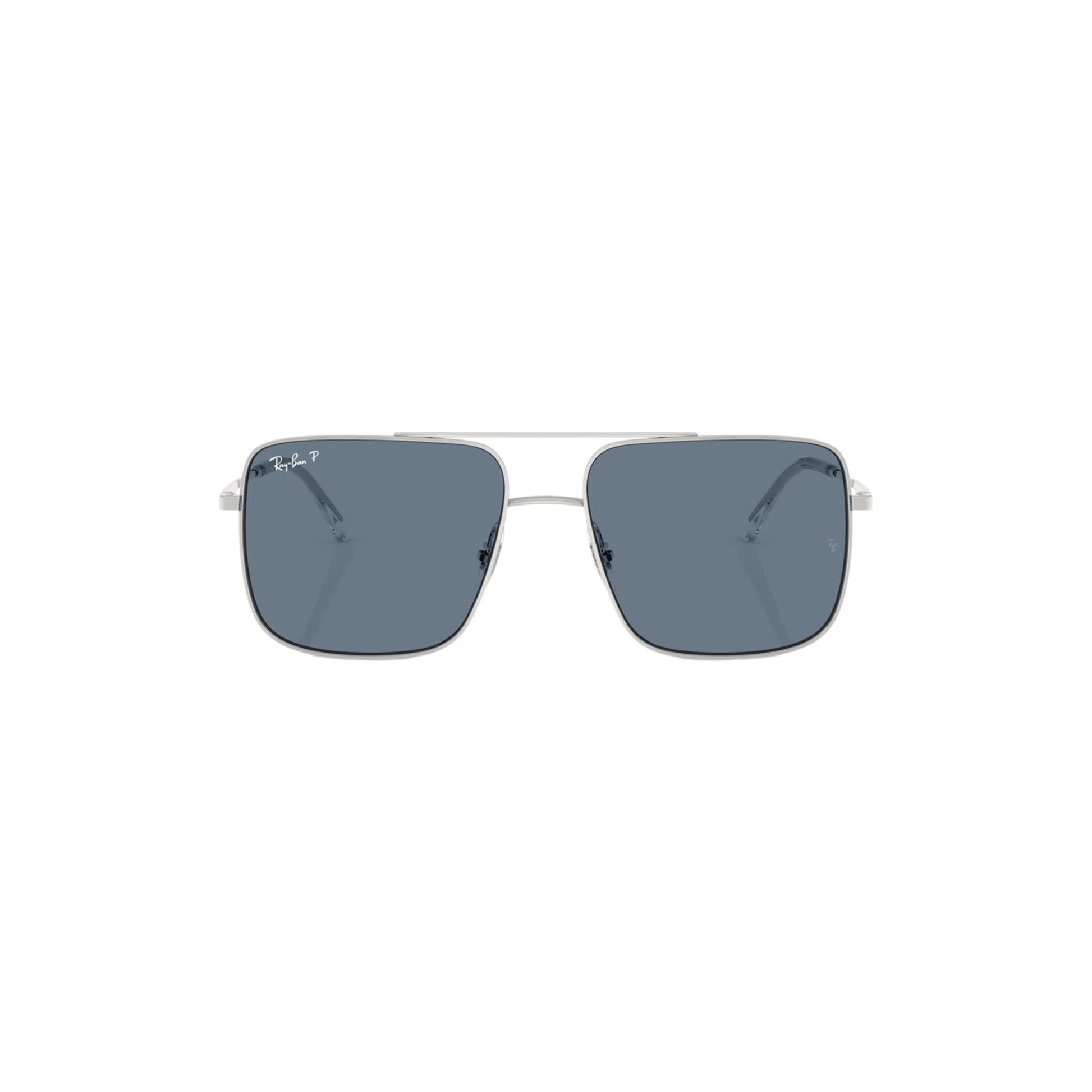 The Ray-Ban Ari Prateado sunglasses feature a metal frame in square shape in silver, with blue polar lenses. Unisex.