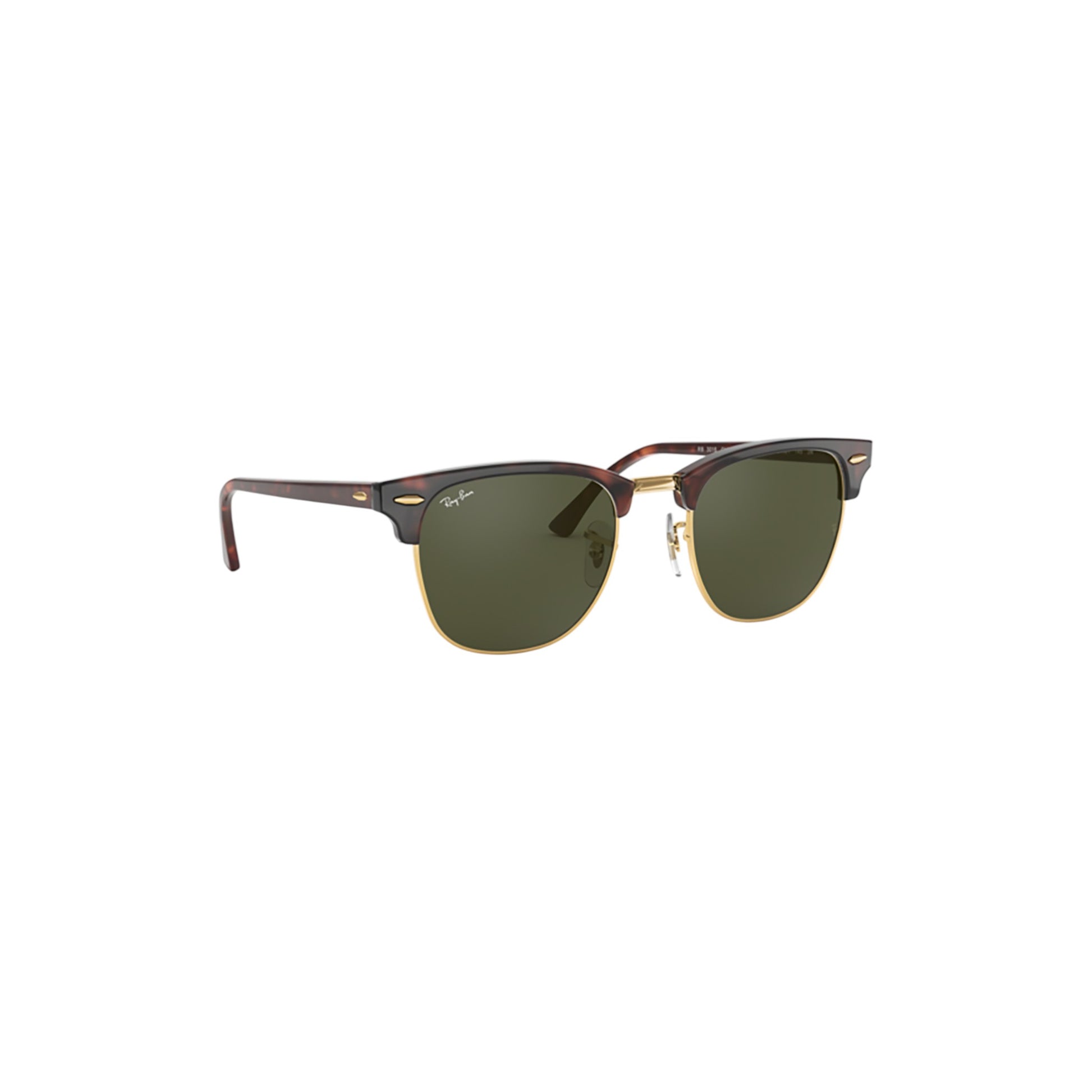 The Ray-Ban Clubmaster Havana e Dourado sunglasses feature an acetate and metal frame in square shape in havana brown, with g-15 green lenses. Unisex.