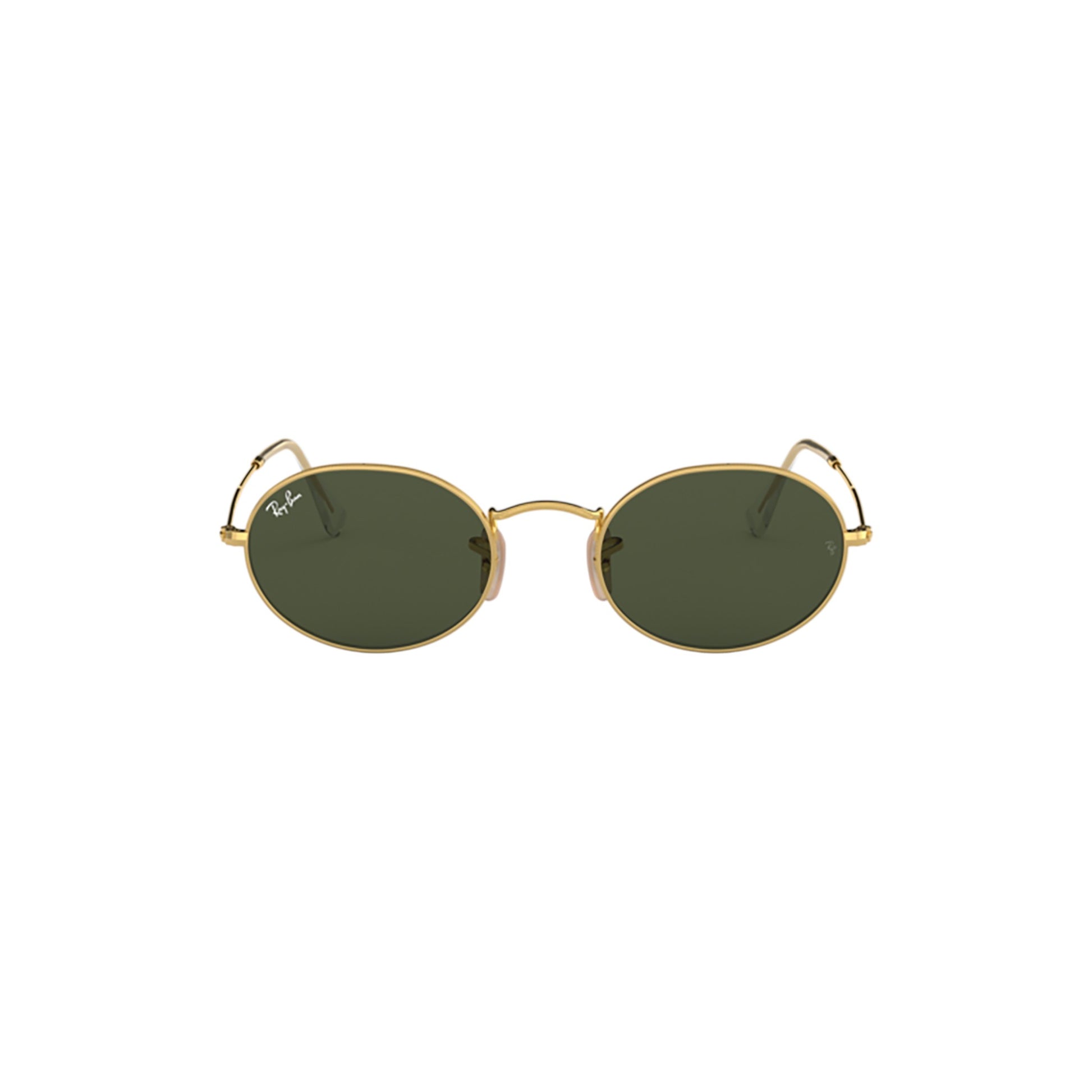 The Ray-Ban Oval Dourado sunglasses feature a metal frame in round shape in gold, with g-15 green lenses. Unisex.