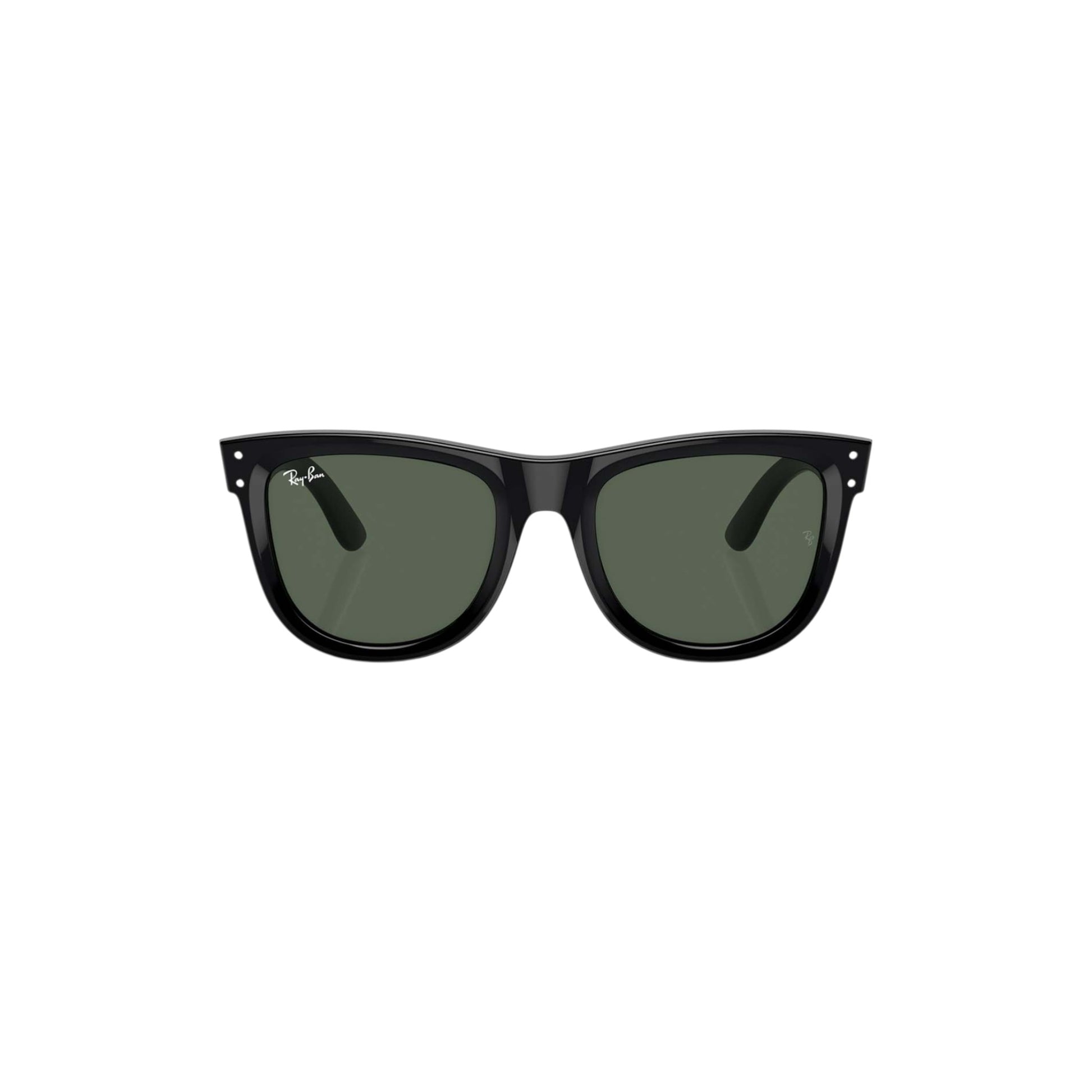 Os óculos de sol Ray-Ban Wayfarer Reverse Preto apresentam armação em acetato de formato quadrado em preto, com lentes verde escuro sólidas. Unissexo.